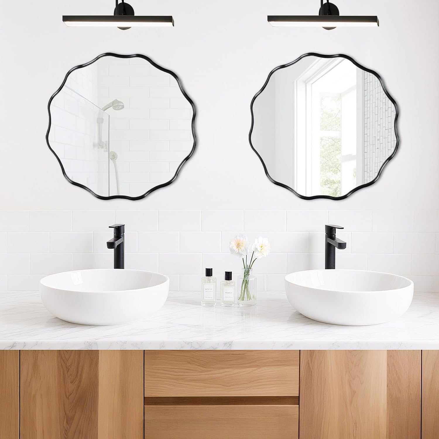 - Eyes-Catching Wavy Glam: Be the envy of your guests! Our bathroom mirror's wave-edge design creates mesmerizing light reflections, turning any blank wall into a stunning focal point with instant designer vibes