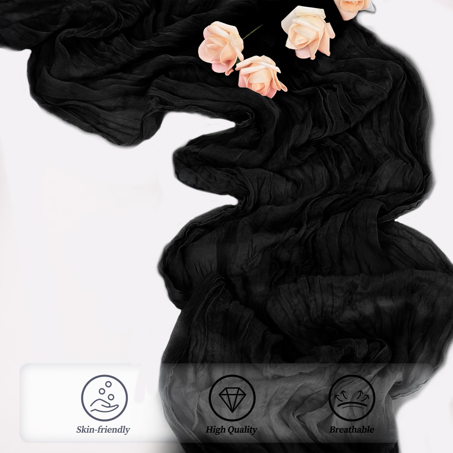 - Cheesecloth Table Runner Size: You will receive 6 black cheesecloth tablerunner, each measuring 20 x 120 inches. The quantity is sufficient for you to decorate various romantic occasions. It can decorate most shaped tables, such as rectangular tables, round tables, and cocktail tables. It is long enough to decorate a large table and be placed perfectly and elegantly on the tabletop, adding a romantic atmosphere to your occasion.