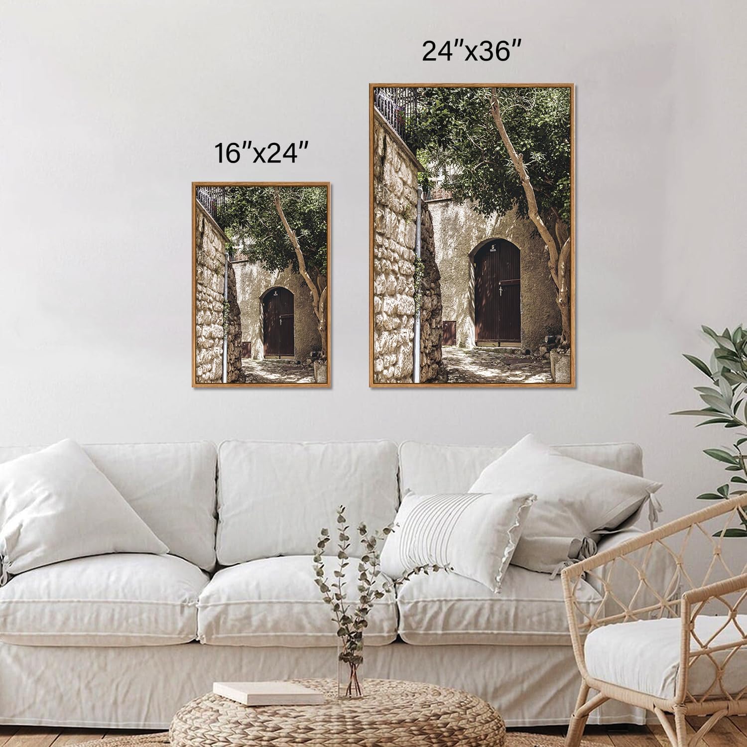 SIGNINART Large Vintage Italy City Landscape Framed Canvas Wall Art Set, Rustic Olive Green Tree Wall Decor, Modern Minimalist French Farmhouse Art Print for Living Room,Bedroom,Office 24"x36"x3