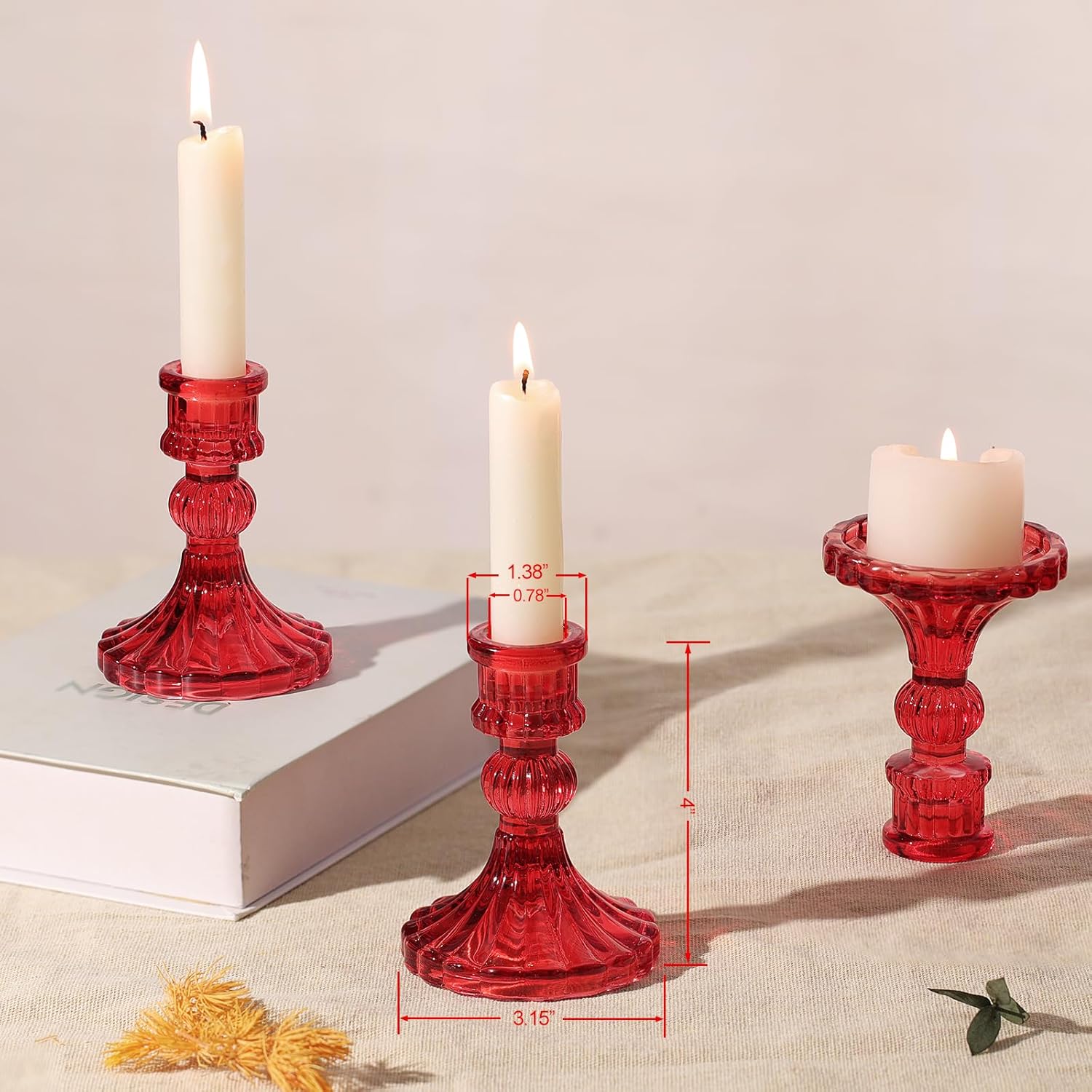 12PCS Red Candlestick Holders Set- 4" H Taper Candle Holders, Glass Candle Holders Bulk for Activities, Party, Home Table Centerpieces, Festival Gifts & Windowsill Decor
