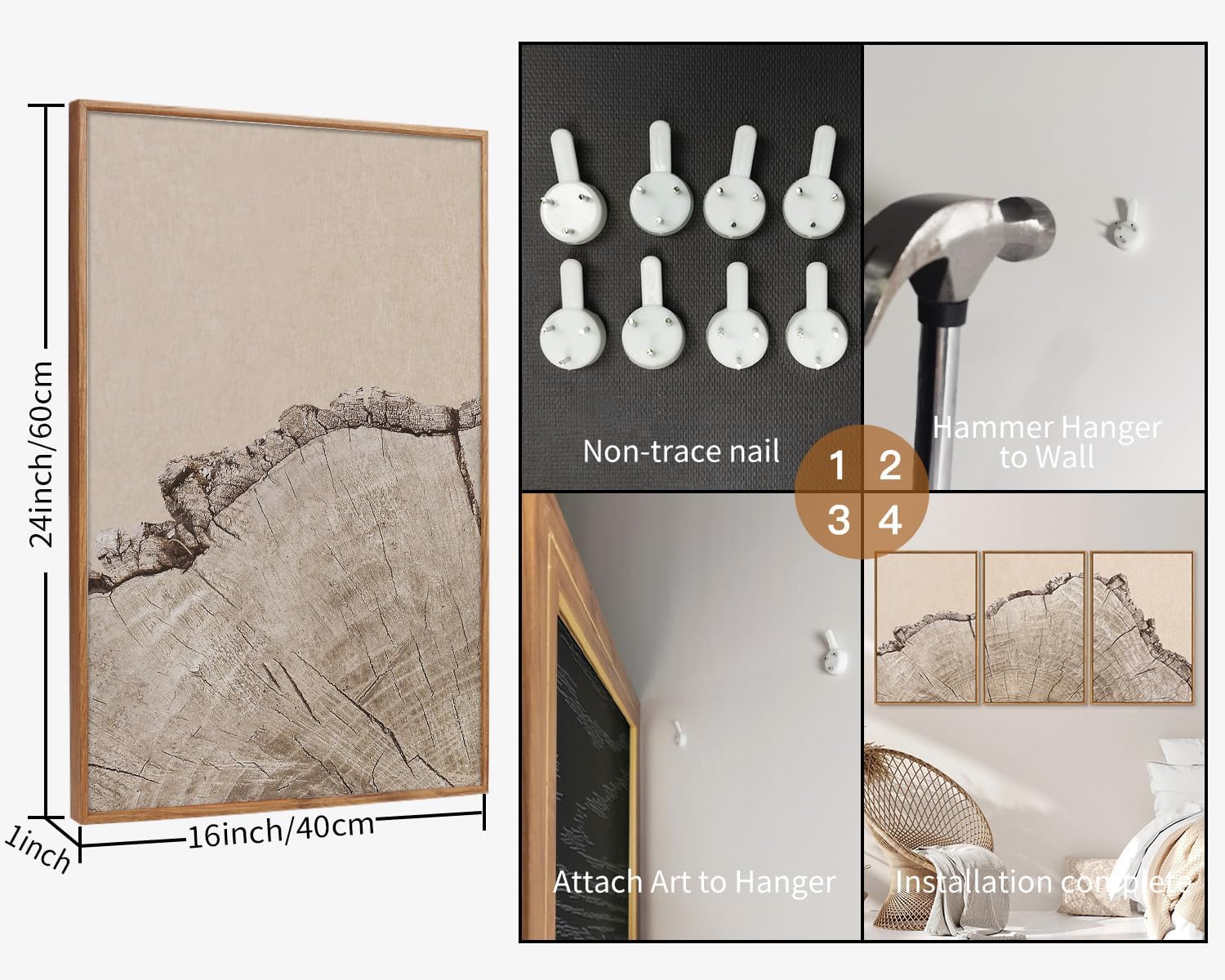 SIGNINART Large Tree Ring Framed Canvas Wall Art Set, Rustic Beige Wooden Wall Decor, Neutral Nature Wood Stump Artwork, Modern Art Prints for Bedroom Living Room Office 24"x36"x3