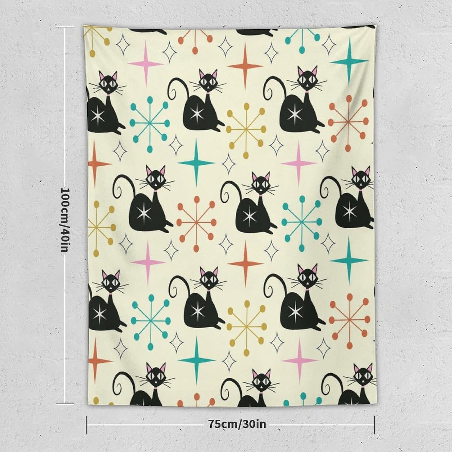 ICMOLYYENLO Abstract Cat Tapestry, Medieval Abstract Atomic Star Cat Vintage Home Wall Hanging Art Tapestry for Bedroom Living Room Dormitory 60x60 Inch