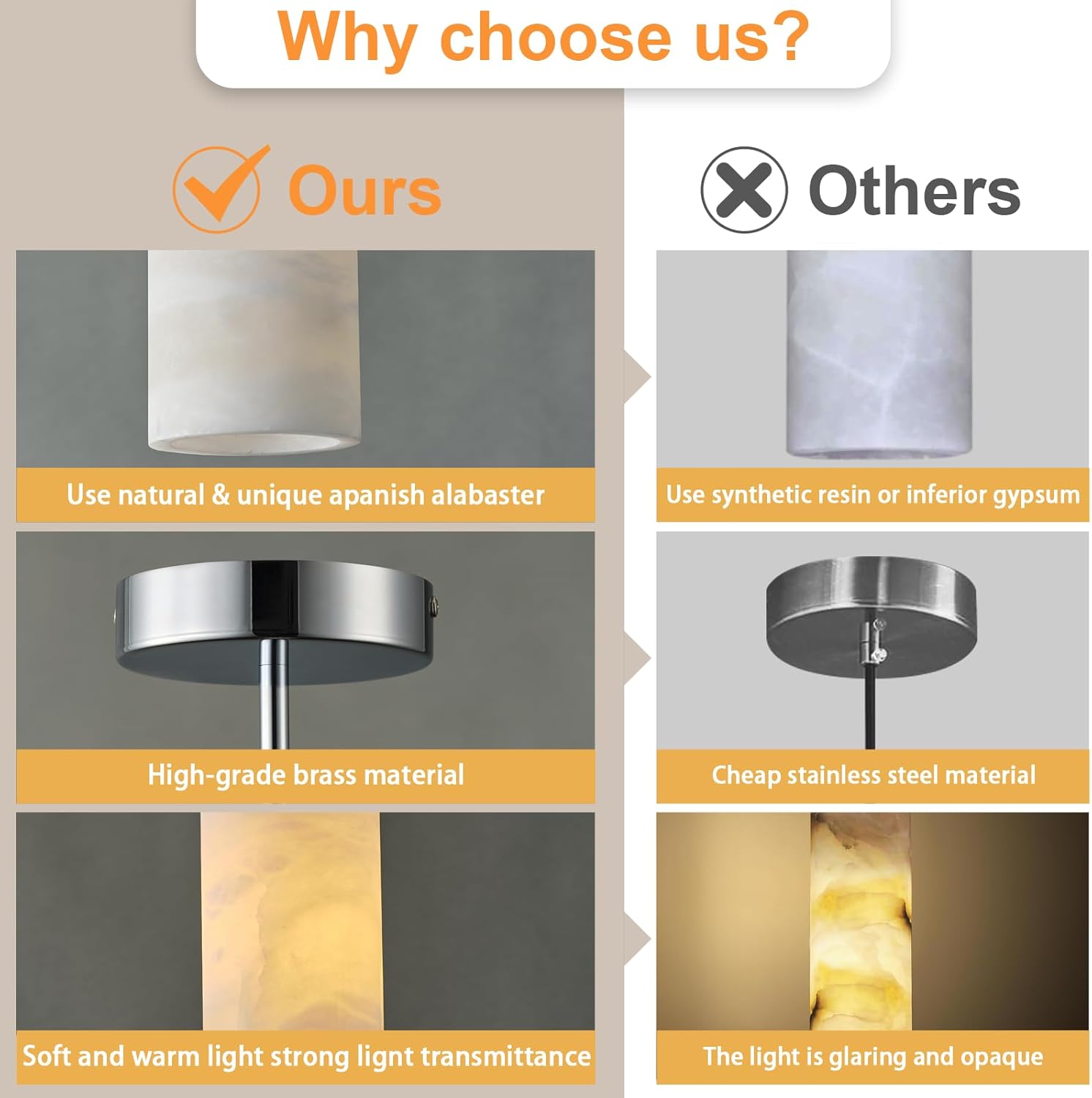 • 【Natural Spanish Alabaster】Alabaster lamp is made of alabaster imported from Spain, a natural stone solidified by volcanic lava for millions of years. It is strong and durable, and the lighting effect is bright and non-glare. Each piece of alabaster is carefully selected and hand-polished, presenting a delicate and charming appearance, enhancing the natural beauty of the stone.