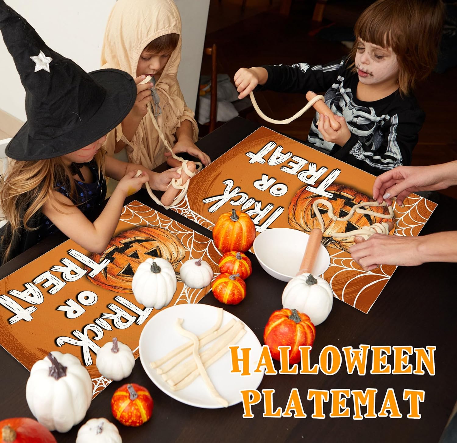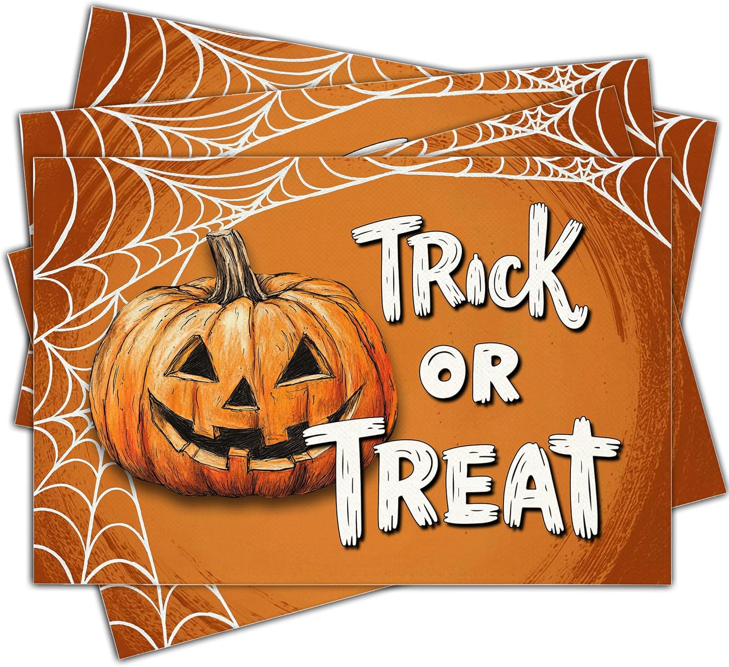 Halloween Pumpkin Placemats Set of 4, 12x18 Inch Trick Or Treat Table Mat, Washable Heat Resistant Place Mats for Kitchen Dining Table, Halloween Themed Decoration for Home-B06