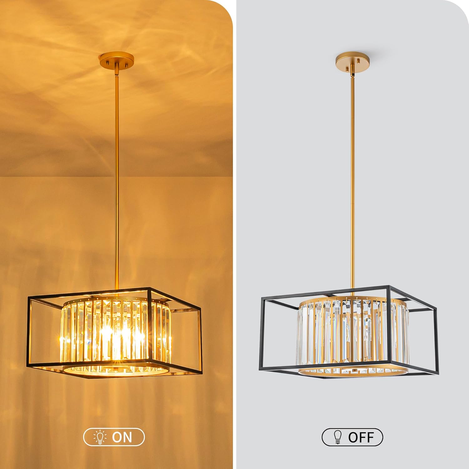 - Gorgeous Appearance: This crystal chandelier boasts shimmering K9 Crystal strips arranged in a cylindrical shape, encased by a geometric black metal frame and warm copper - hued accents. Crafted from Durable Metal Material, the design blends modern minimalism with luxurious radiance. When lit, the K9 crystals refract light into a dazzling, warm glow that elevates the space; when unlit, the contrast of sleek metal and transparent crystal creates a refined, avant - garde look. It complements dining rooms, living areas, and even foyers, infusing spaces with a touch of contemporary luxury.