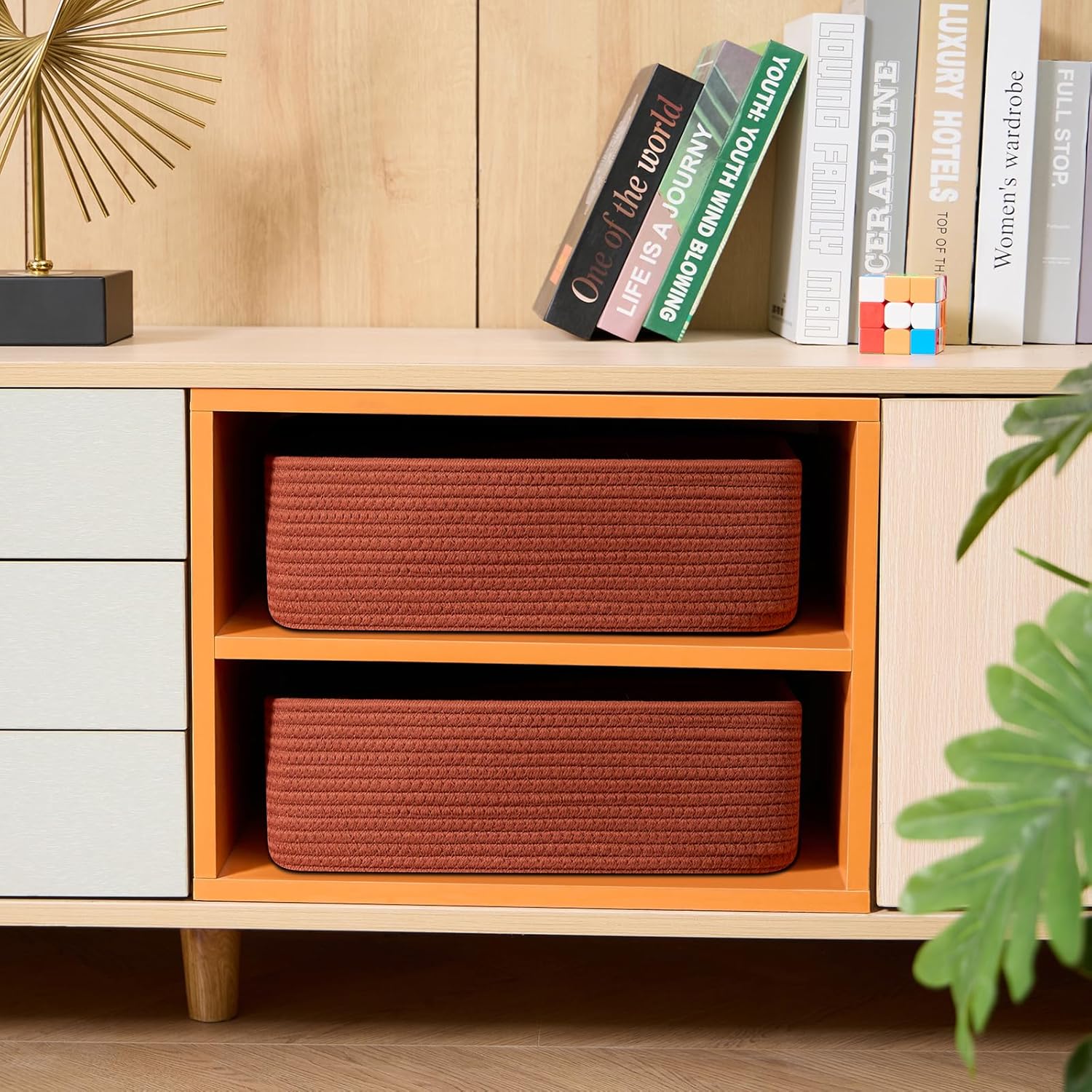 - [ Stylish & Versatile ]: Great for organizing small items on desks, in closets, wardrobes, or dressers—these cute baskets add texture to any living room, bedroom, or bathroom, appealing to fans of modern minimalist design