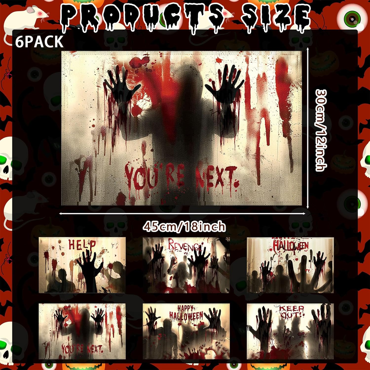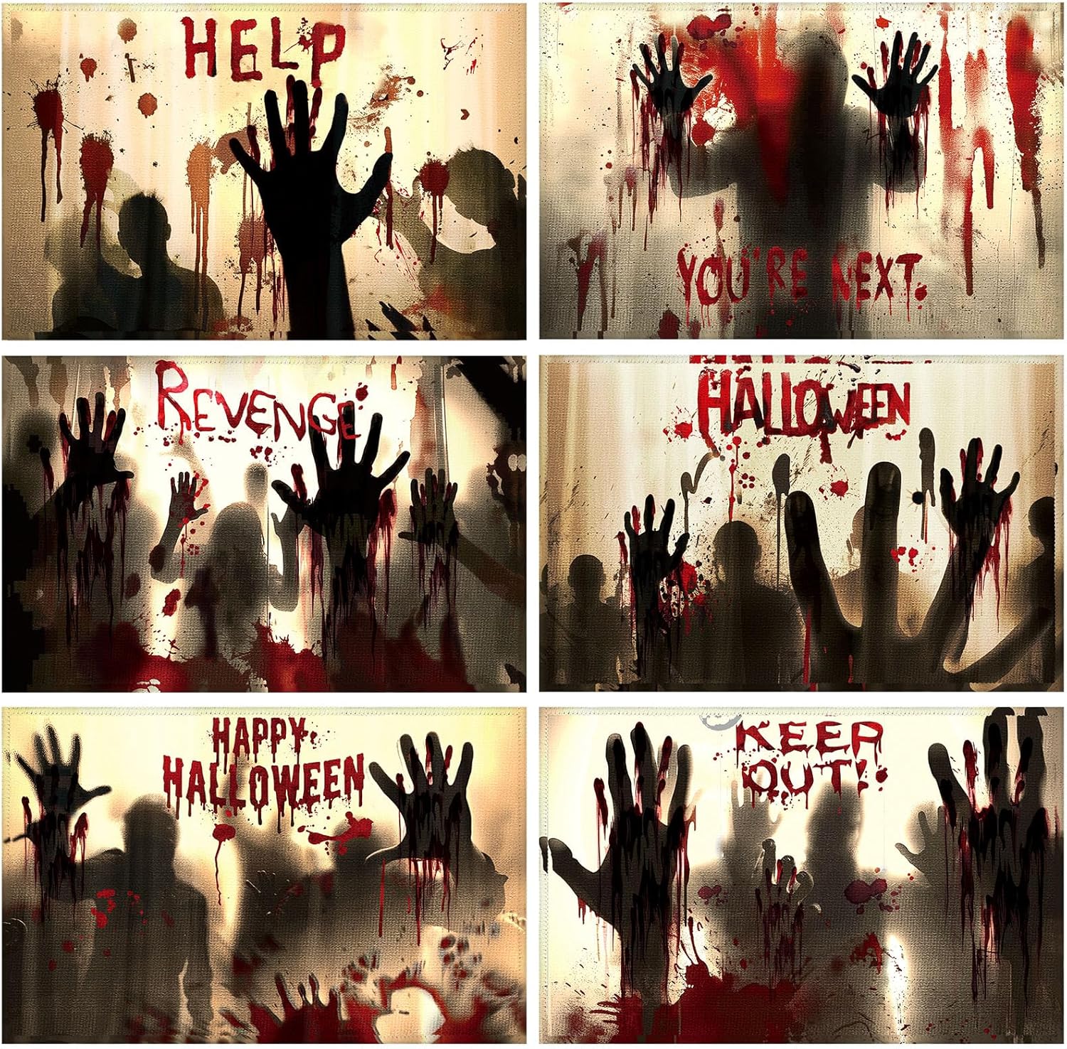 Umigy 6 Pcs Halloween Placemats 12"x18" Gothic Bat Placemats Kitchen Decoration Washable Witch Place Mats Rectangle Skull Table Mats for Halloween Dining Table Accessories (Bloody Hands Style)
