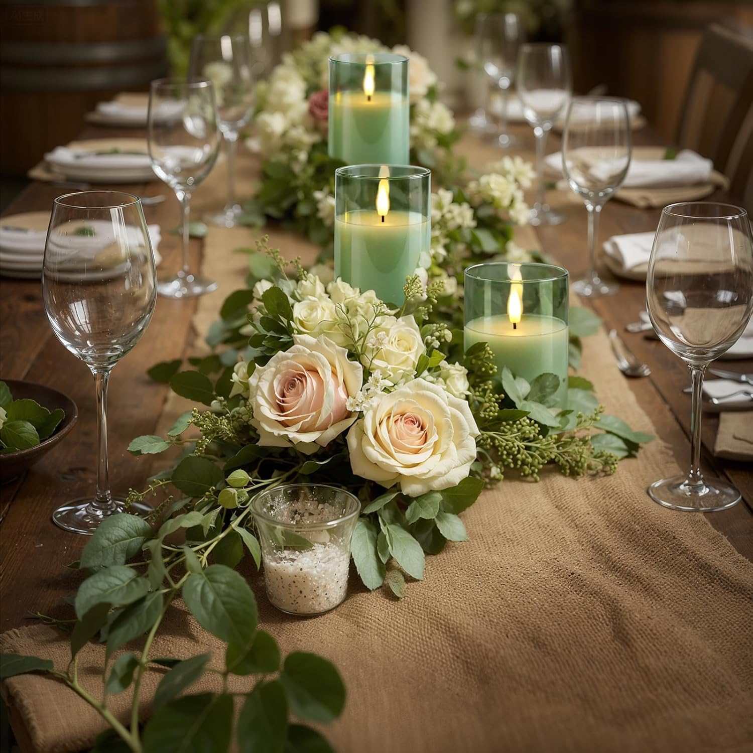 - Package Includes: The flameless candle set includes 3 green LED candles(D3”xH4”5”6”), a remote control and an user manual. Each battery operated candle is powered by 2 AA batteries(not included) that last 500+ hours.