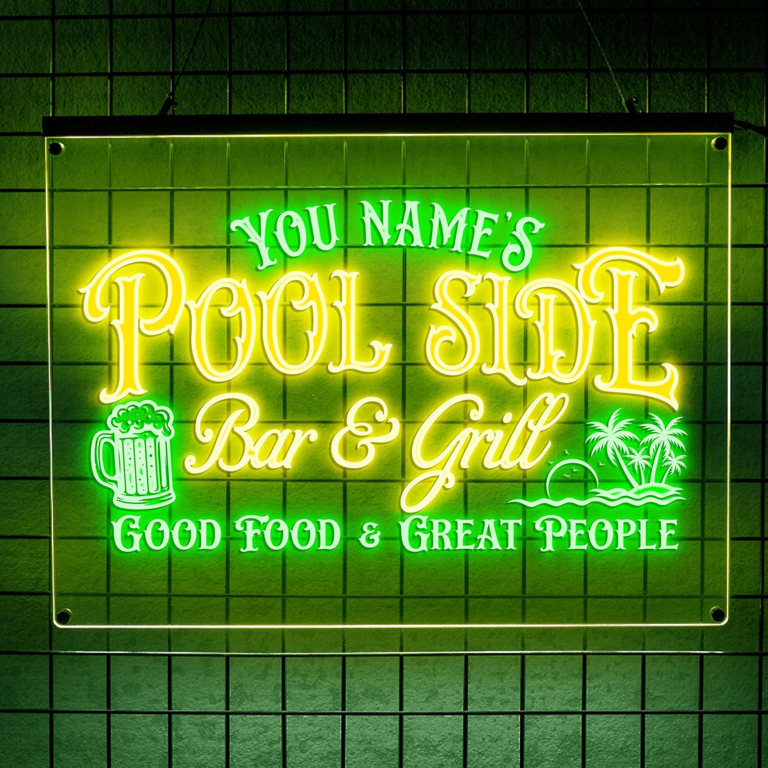 - Wide range of customizable bar signs for every space and mood. Choose from 1 or 2 color personalized neon bar signs, perfect for any custom pub sign or personalized beer sign. Available in 6 LED colors—blue, green, yellow, red, pink, and white. Each sign supports up to 2 colors, letting you personalize your home bar with the perfect mix.