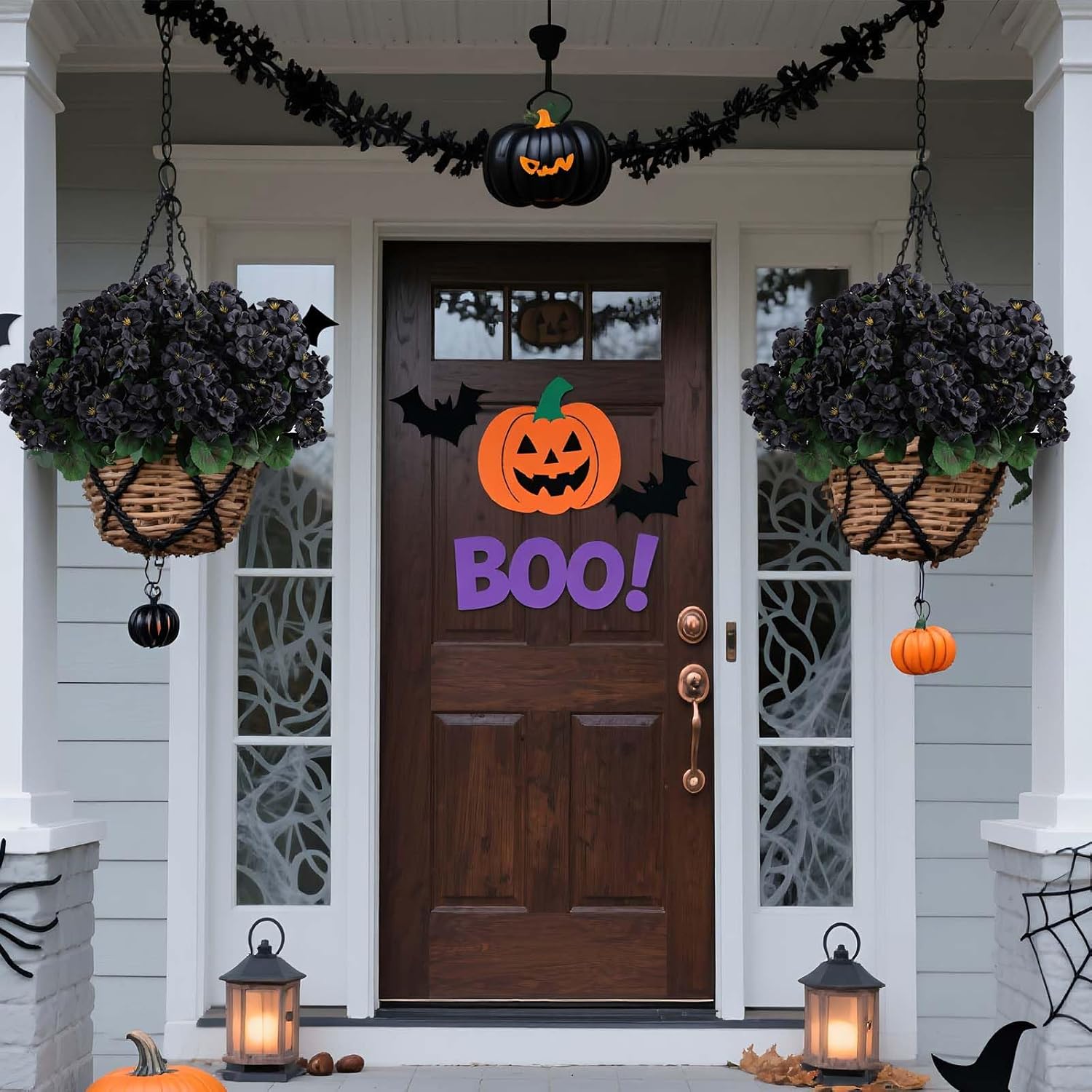Hananona 12 Bundles Artificial Geranium Flowers for Outdoors Black Silk Geranium Flowers Outdoor UV Resistant Plants Faux Black Flower for Home Kitchen Halloween Table Centerpieces Decor (12, Black)