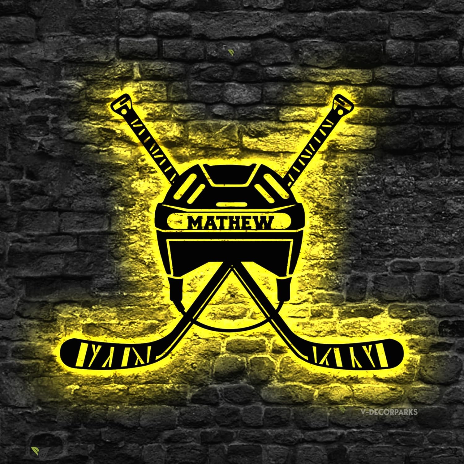 - [Easy Install Hockey Decor]: This custom light up sign includes pre-attached hooks for simple hanging. LED strips highlight the cutout hockey design, creating stylish metal art wall decor, hockey signs, and hockey decor. Great best gifts for hockey players, sports fans, and unique personalized sign gifts.