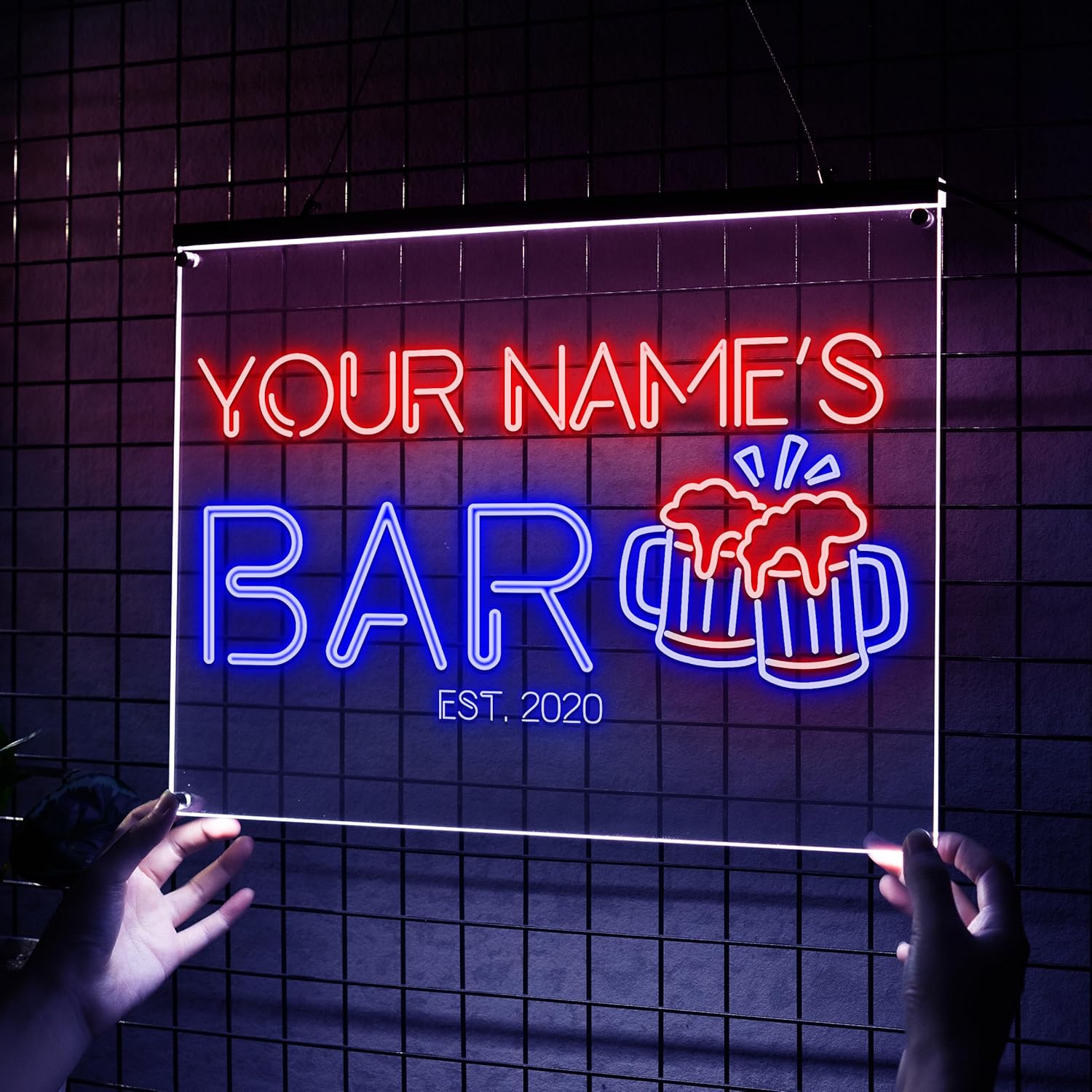- Wide range of customizable bar signs for every space and mood. Choose from 1 or 2 color personalized neon bar signs, perfect for any custom pub sign or personalized beer sign. Available in 6 LED colors—blue, green, yellow, red, pink, and white. Each sign supports up to 2 colors, letting you personalize your home bar with the perfect mix.