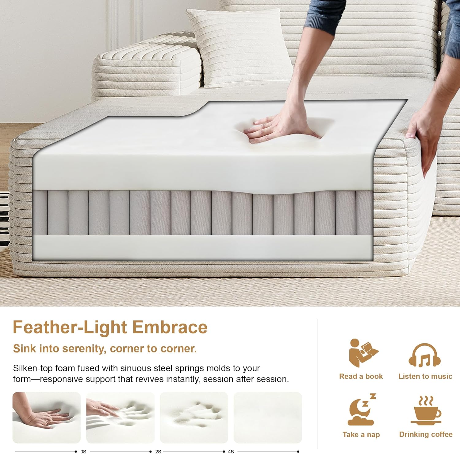 108" Sectional Couches for Living Room Modern Modular Sofa with L-Shape Couchs Upholstered Boneless Couch Deep Seat Sectional Couch with Chaise (White, Left Facing Chaise+2Seaters)