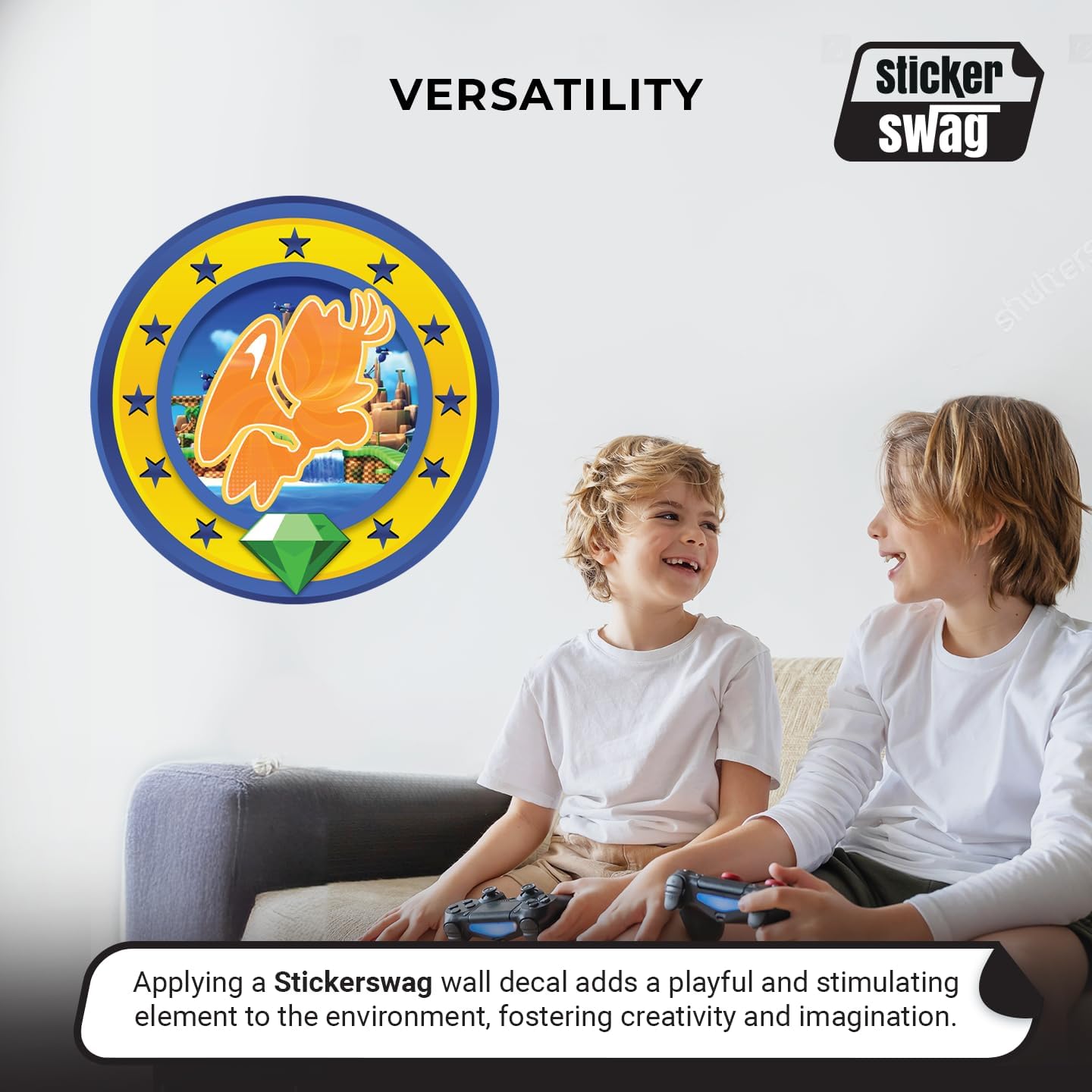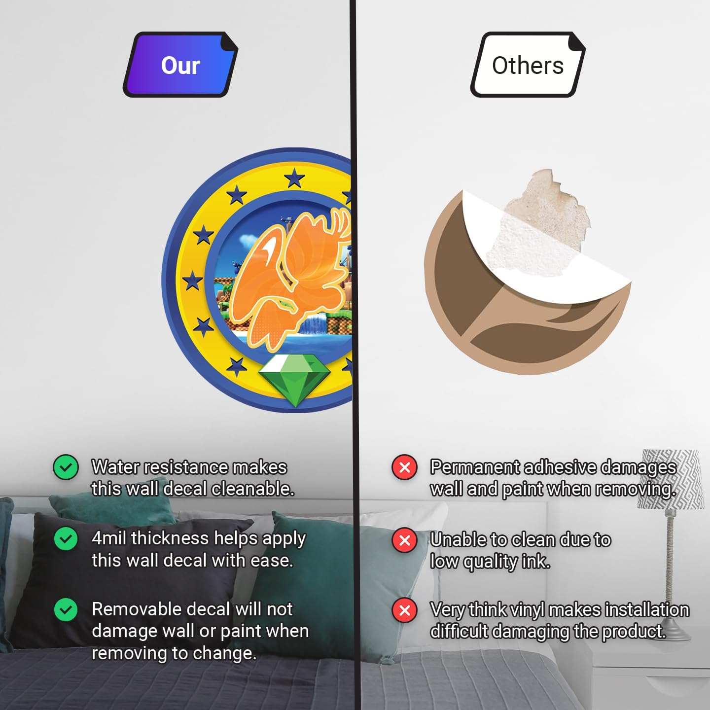 Speed Hero Wall Decal – Removable Vinyl Wall Art with Chaos Emerald Design – Gaming Room, Bedroom & Playroom Decor (Flying Hero)
