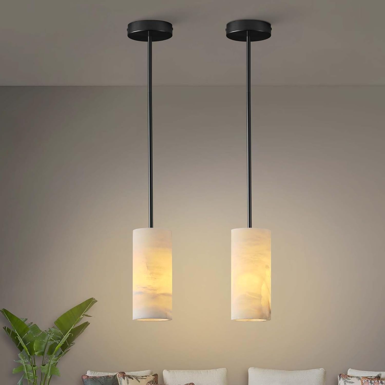 - 【Wide Application for Indoor】Alabaster pendant light fixture design is simple and exquisite, can be used as the perfect art for decorating home, suitable for a variety of home decoration styles. Ideal for restaurants, bedrooms, offices, kitchen islands, living rooms, corridors, entryways, foyers, stairs, farmhouses, bars, cafes, hotels, etc.
