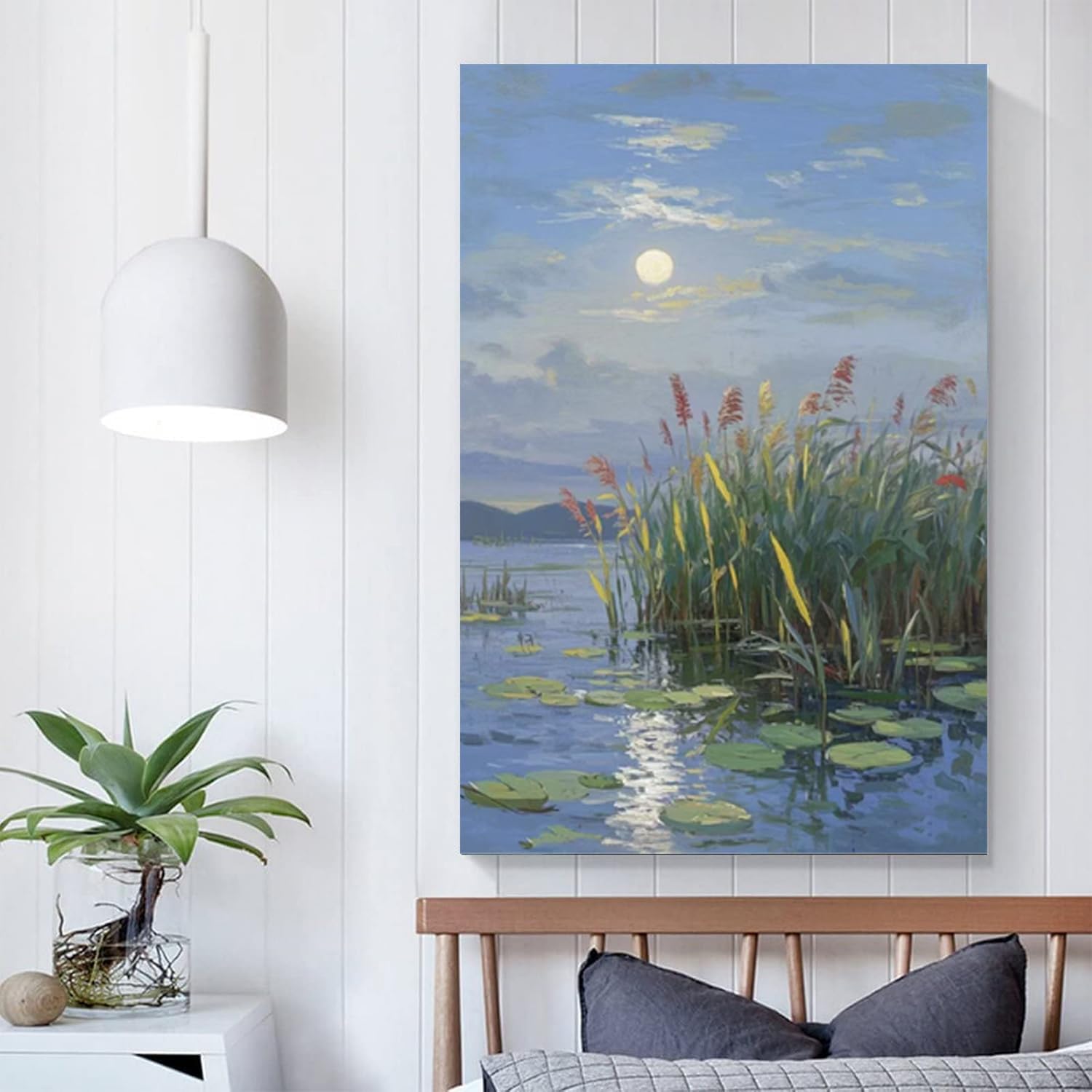 Landscape poster artwork art poster natural landscape painting reed marsh under the moonlight suitable for living room bedroom home wall