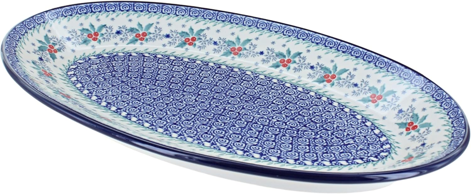 Blue Rose Polish Pottery December Joy Oval Platter