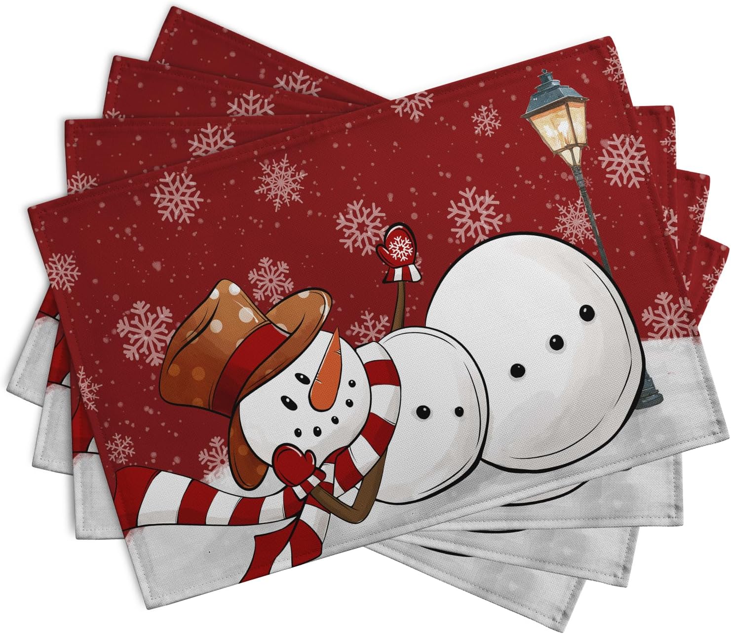 - PERFECTLY SIZE: The red snowman placemats set of 4, Each rectangular place mats is 12x18 inch (30 cmx45 cm) that can exactly fits your needs to use in all kinds of situations