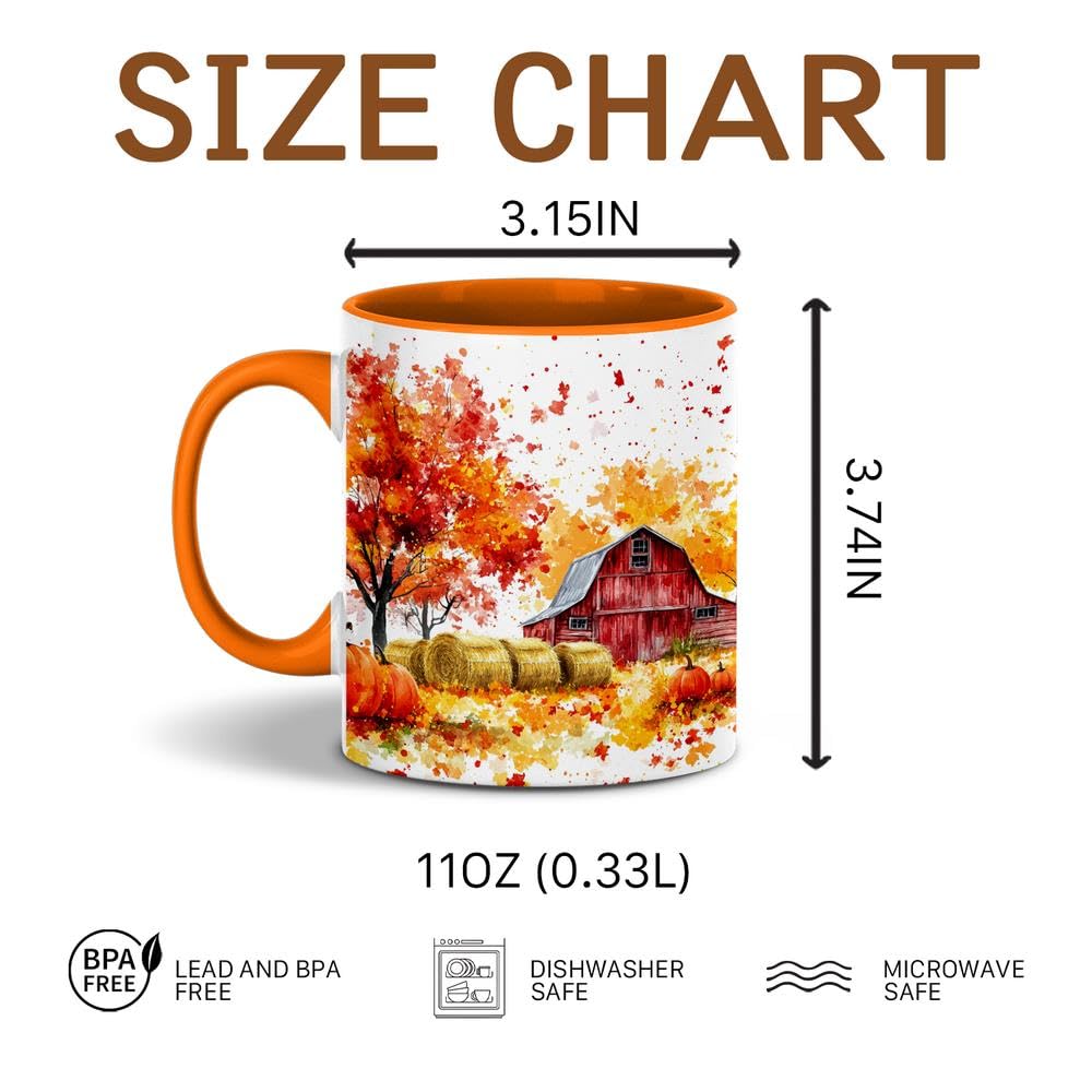 Fall Farm Coffee Mug - Farm Lover Mugs Gifts for Women Men - Autumn Decor Gifts For Home Farmhouse Thanksgiving - 11oz Printed Ceramic Mug
